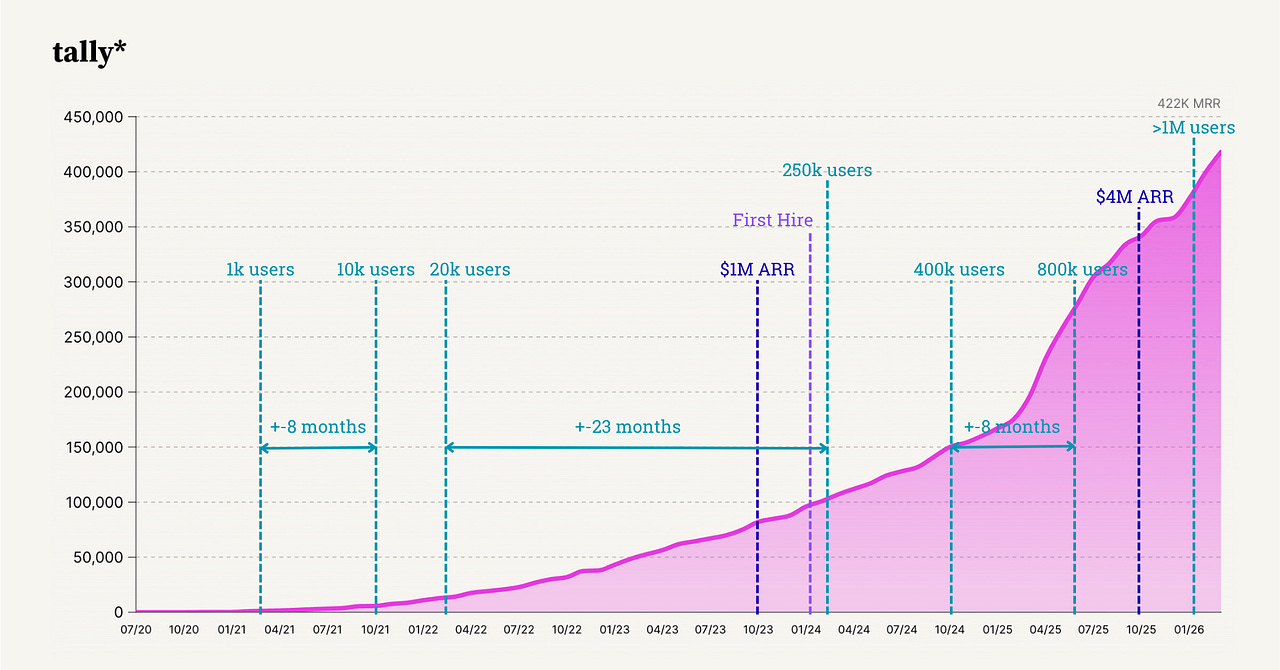 A genius pricing model, a high leverage growth engine, and other lessons from Tally's journey to $5M ARR.