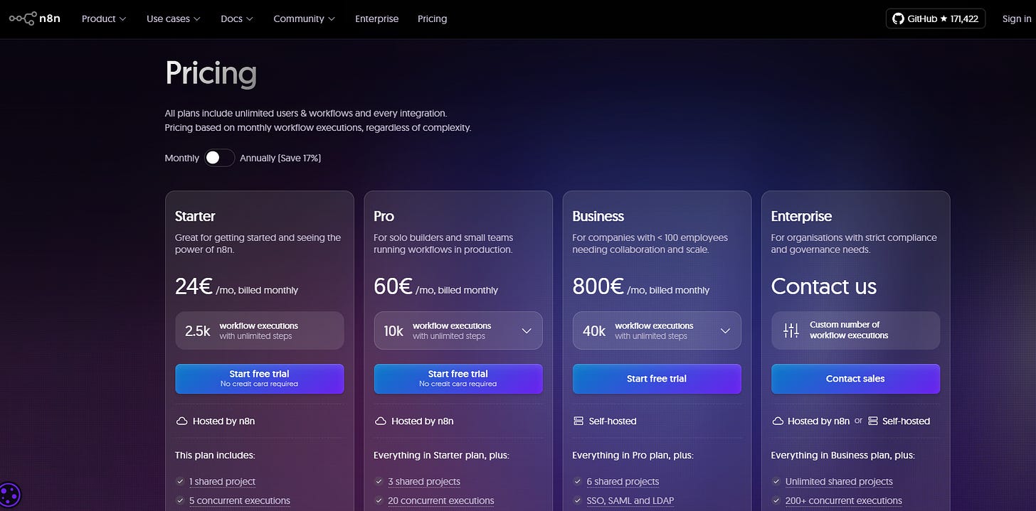 Now for as little as 24 euros a month businesses can leverage the powerful of n8n without having to spin up a server and deal with any infrastructure.