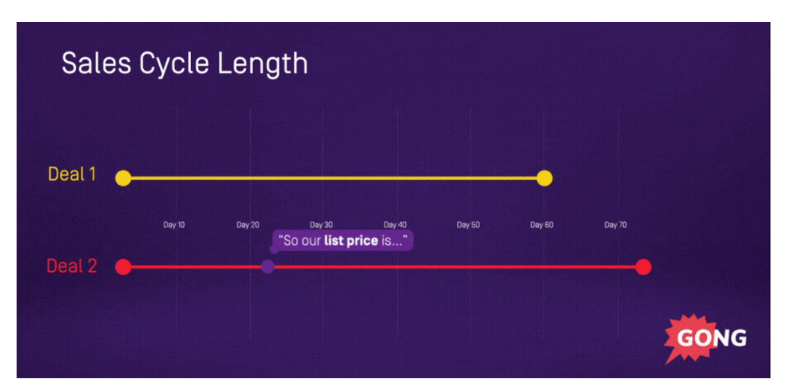 Gong found out that by mentioning “list price”, “typical price”, or “standard price” on sales calls, the sales process was 19% longer.