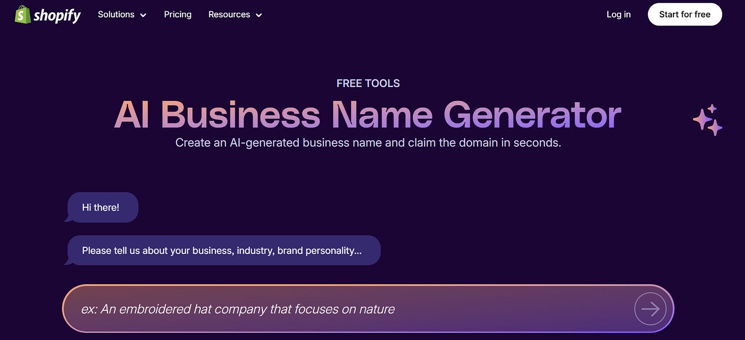 Need help naming your new company? Shopify has you covered with their AI business name generator.