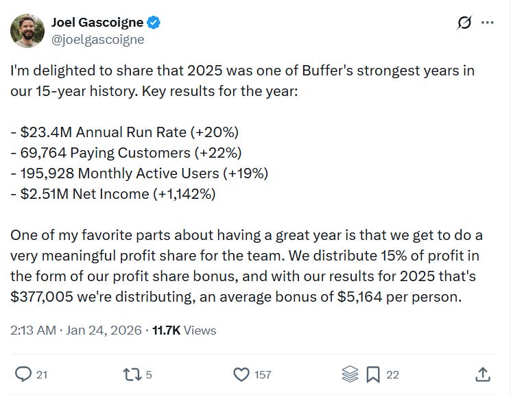 Buffer is an extreme case of “build in public” and have decided that the pros of being ultra transparent outway the cons.