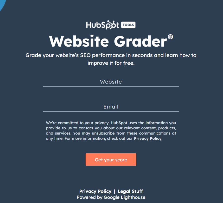 Notice in the screenshot above how HubSpot requests an email address to use the grader. This makes the Website Grader a powerful lead generation tool for HubSpot.