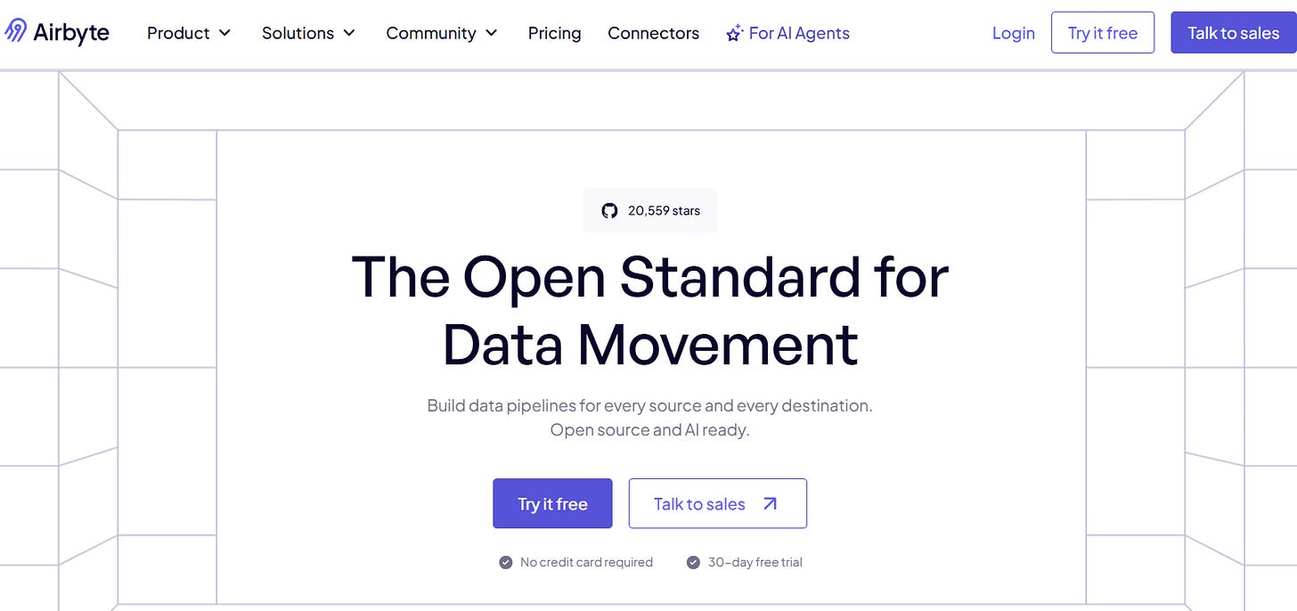 Airbyte started out as an open-source solution and today has over 20,000 stars on Github.