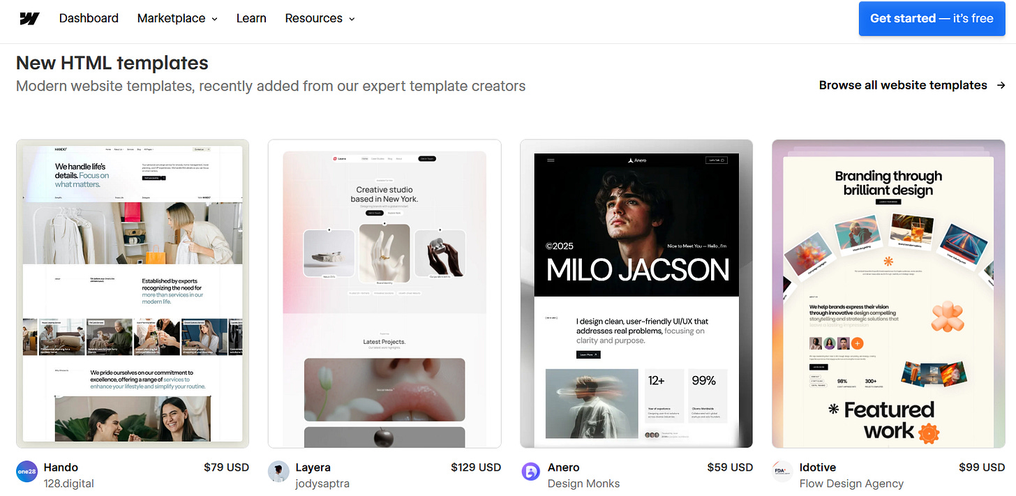 Templates can be either free or paid. Webflow only takes 5% in commission for sales of premium templates.