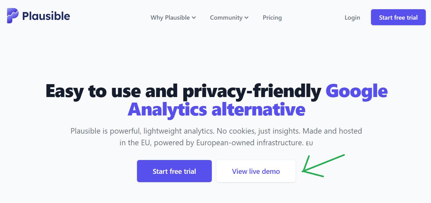 When visiting Plausibleâs homepage, youâll notice a âView live demoâ call-to-action.