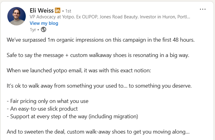 In 2024 Yotpo launched their âwalk awayâ campaign that created millions of organic impressions for their brand.