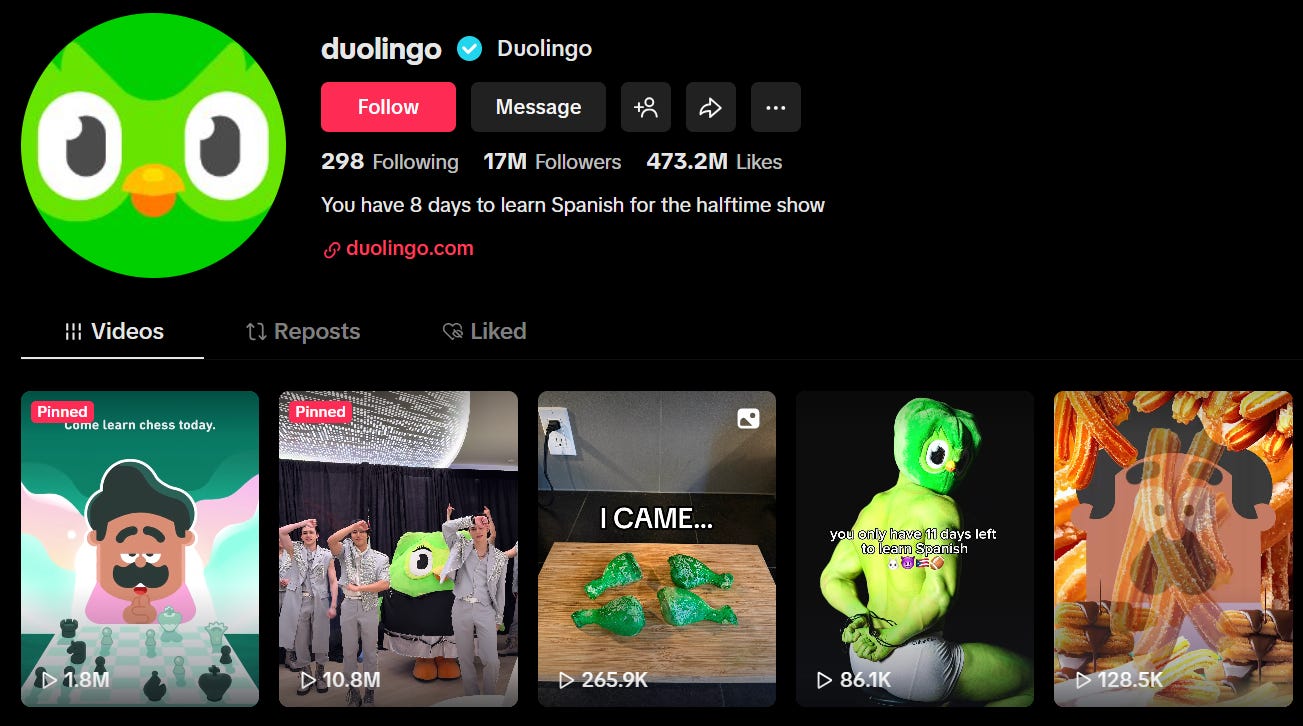 The videos are "unhingedâ and designed perfectly for the younger TikTok audience. Duolingo understands that to stand out on TikTok, videos need to raise eyebrows.