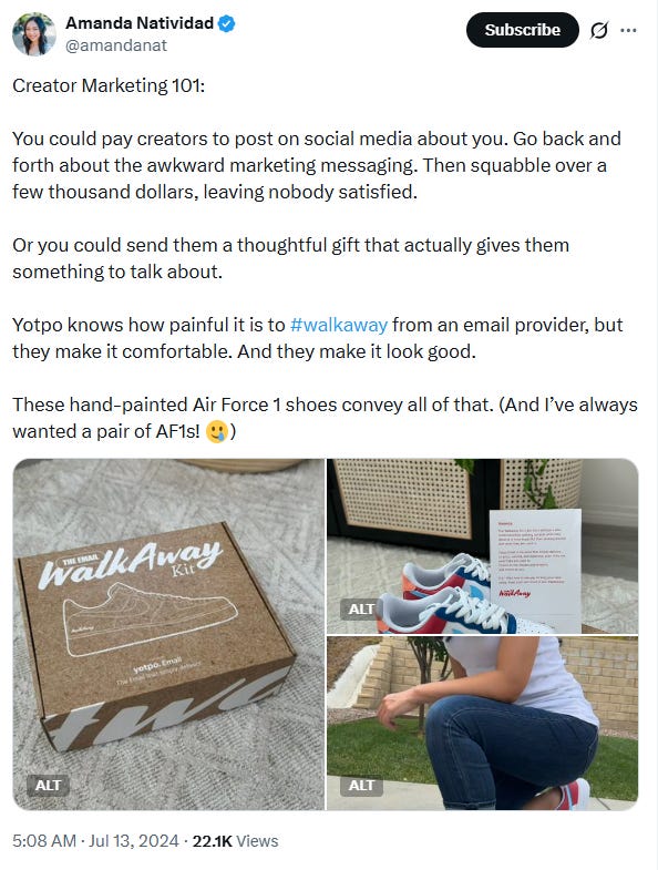 Yotpo picked the right people who had influence in their market. This meant that even if a fraction of the people that received a pair talked about it, a lot of potential businesses for their email product would hear about it.