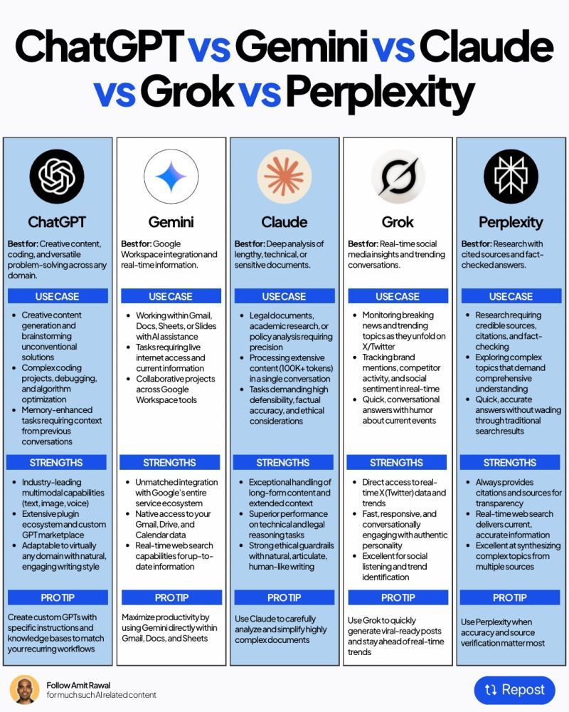 If you’re not sure which AI chatbot you should be using, the graphic below might come in handy.