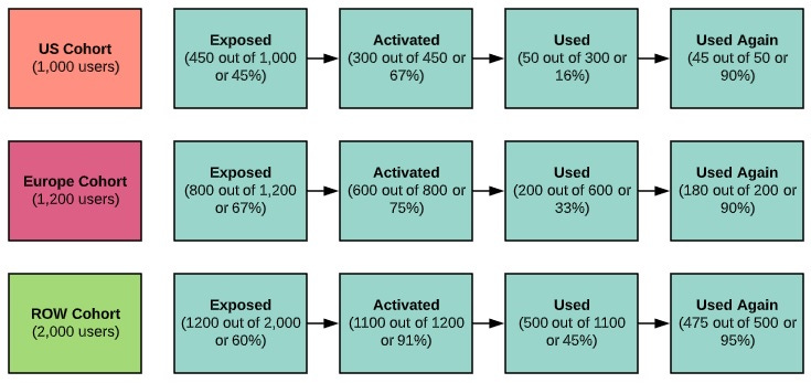 There are a ton of nuances that you will have to take into account when using the framework. For example, there are certain features which aren’t necessary relevant for all users. In this case you’ll want your cohorts to reflect that.
