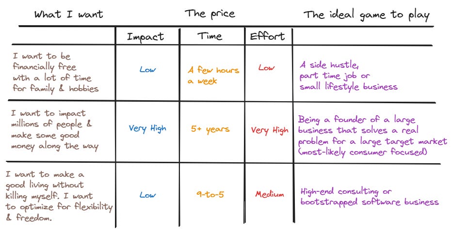 Once you’ve understood these key variables and decided where on the spectrums you land, you can decide which game you want to play.